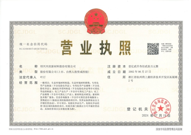 紹興興欣新材料股份有限公司成立于2002年06月27日,占地面積122畝,位于杭州灣上虞經(jīng)濟(jì)技術(shù)開(kāi)發(fā)區(qū)拓展路2號(hào),現(xiàn)有職工200余人,專業(yè)技術(shù)人員50余人;博士、碩士研究生30余人組成的一支知識(shí)型、專業(yè)化的技術(shù)科研團(tuán)隊(duì)。公司面向全球市場(chǎng),專業(yè)開(kāi)發(fā)電子化學(xué)品、環(huán)?;瘜W(xué)品、醫(yī)藥中間體、高分子材料等先進(jìn)新材料重點(diǎn)領(lǐng)域的省級(jí)科技型企業(yè);建有浙江上虞、安徽東至兩個(gè)生產(chǎn)基地。目前為“國(guó)家高新技術(shù)企業(yè)”、浙江省“隱形冠軍”企業(yè)、浙江省專精特新中小企業(yè);建有“省級(jí)”研究開(kāi)發(fā)中心,共建天津大學(xué)浙江紹興研究院電子化學(xué)品研發(fā)中心。